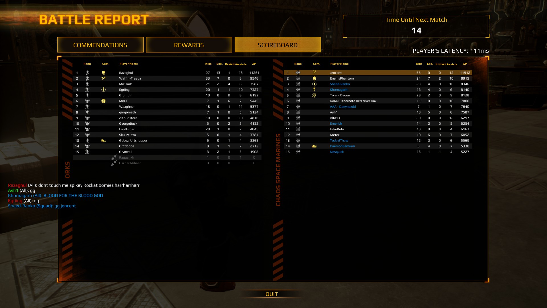Вернулся к вам из варпа на время ивента. И знаете что? Я в печали. Мили стало в буквальном смысли безмозглым. Просто спамь с меча и ломай оружие, а потом убийвай тактика. Не стараясь, взял неожиданно 55 фрагов. Тактики абсолютно беспомощны. До патча мили было норм, а сейчас тонны нубов, которые под ногами мешаются. Свои победы я уже откатал, а как кончится ивент... Опять уйду в варп. Обидно, что такой хороший патч с рельюсом ЛП коста засрали, срезав стан у тактиков.