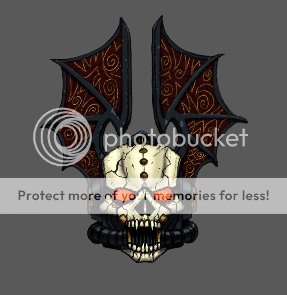 And I personally like the bat winged helmets. They are completely ceremonial but serve to illustrate the Nostroman "aristocratic" lifestyle and art theme that was prevalent throughout the Legion vessels and relic wargear. The main part of the Legion was gutter thugs and murderers, but there were also Terrans who brought their ways into the legion during its early years. http://i658.photobucket.com/albums/uu305/Herald_of_iron/Azgule_new_helmet.png You wont find this one around much. Made it myself.